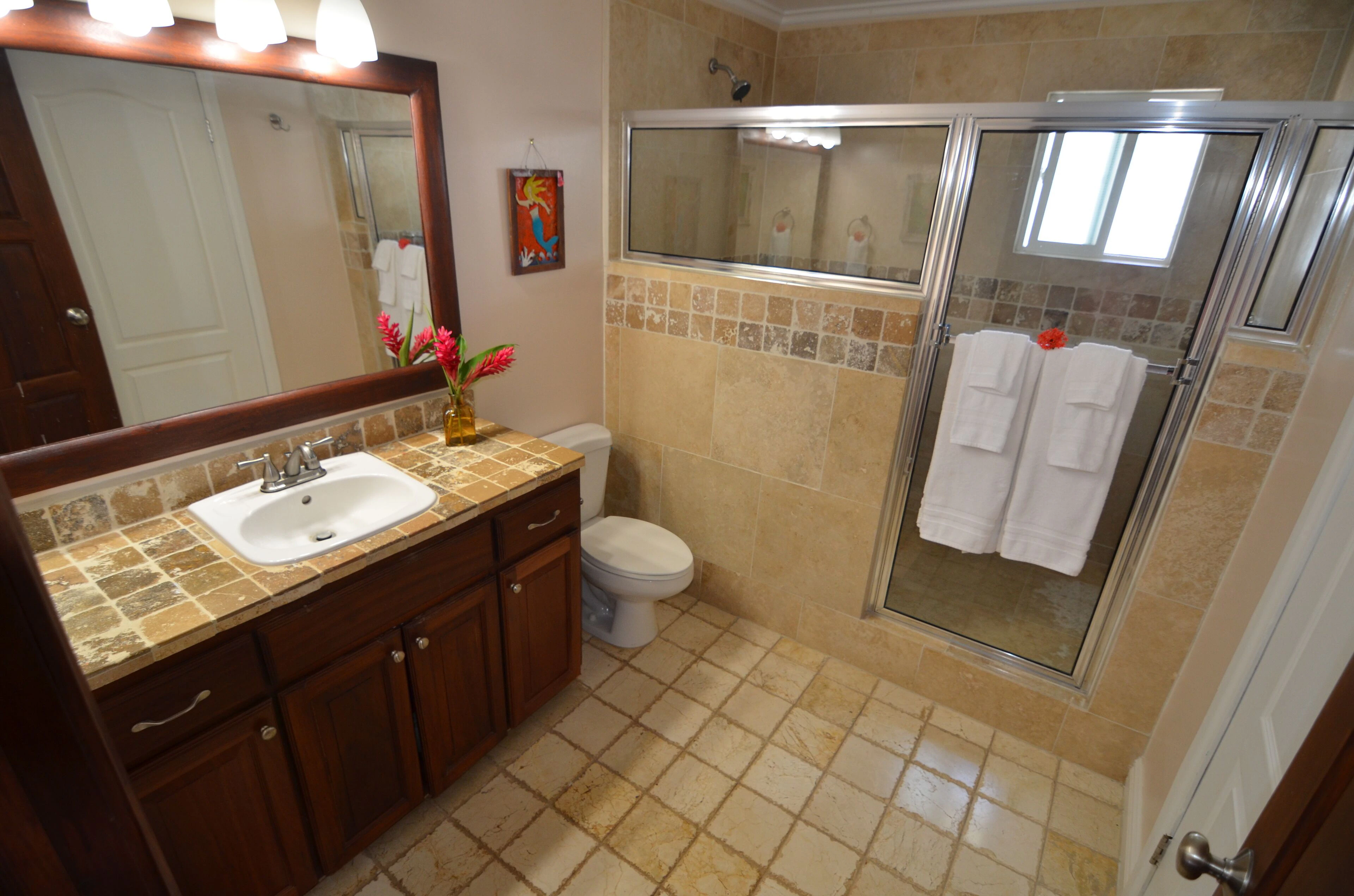 Bedroom-1 offers the comfort of a queen size bed along with a beautiful, tiled ensuite bath with travertine shower and double sinks.