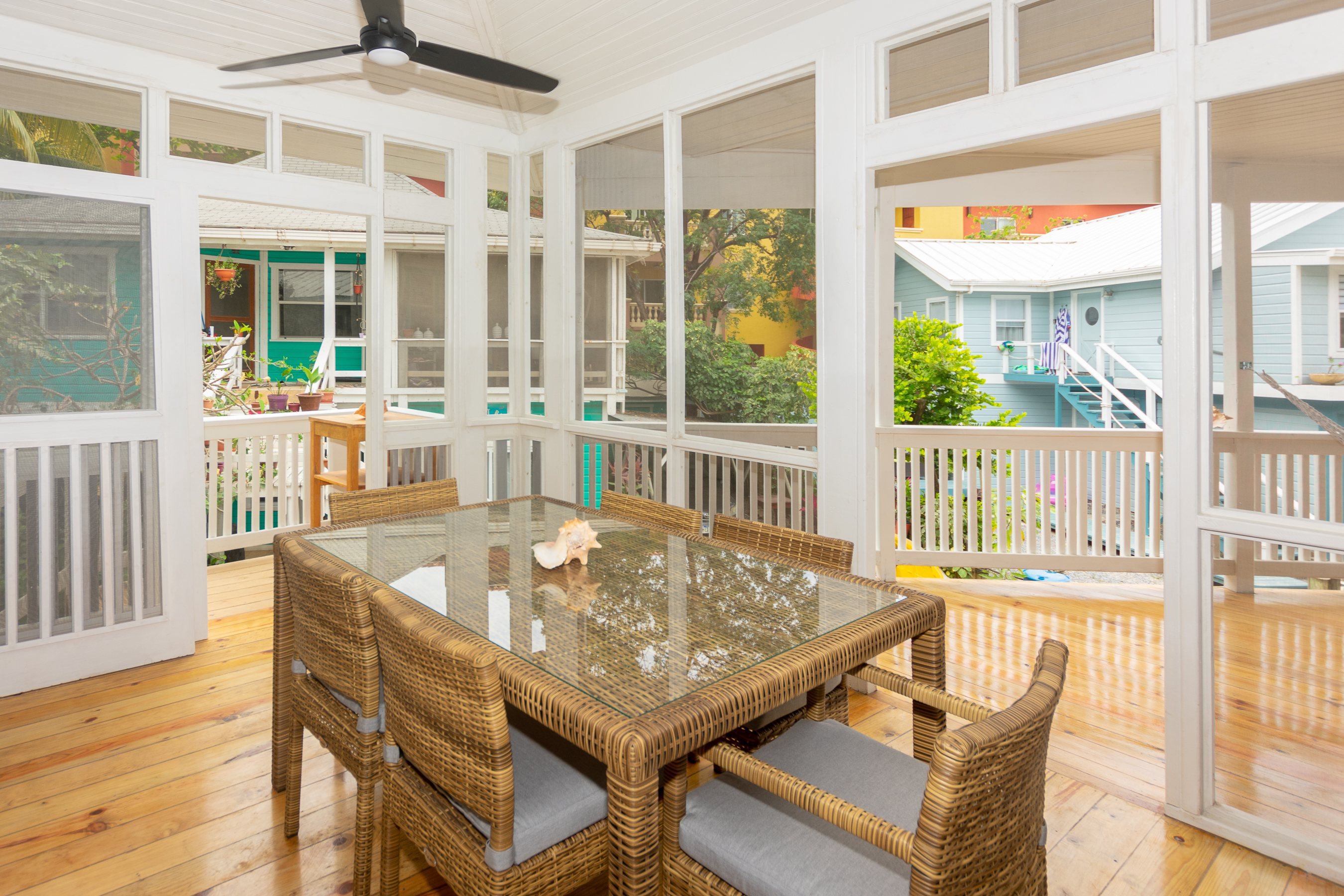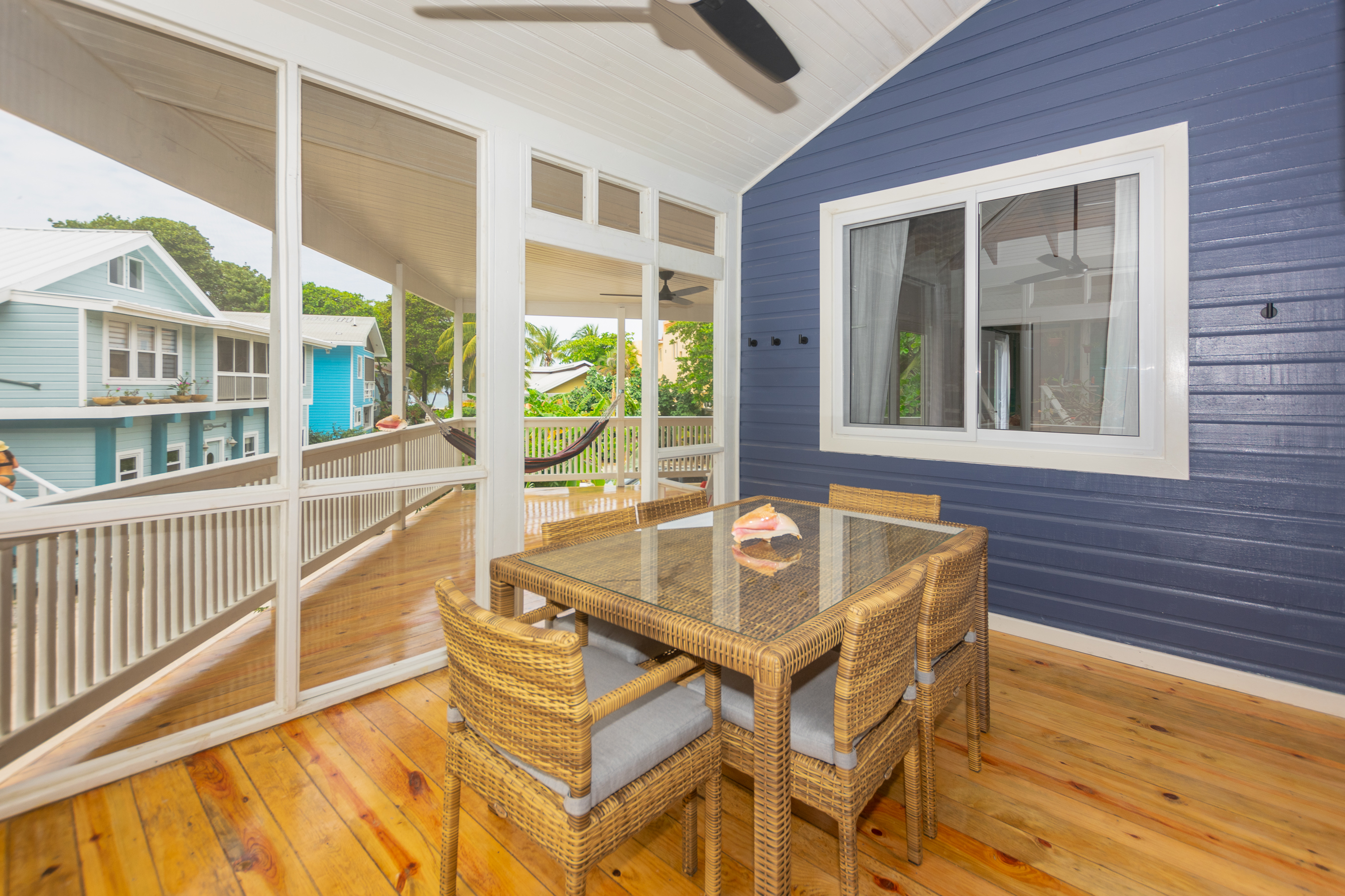 The balcony offers a screened-in dining area, perfect for enjoying all your meals with friends and family.
