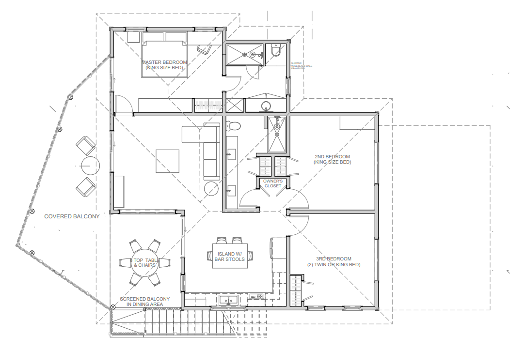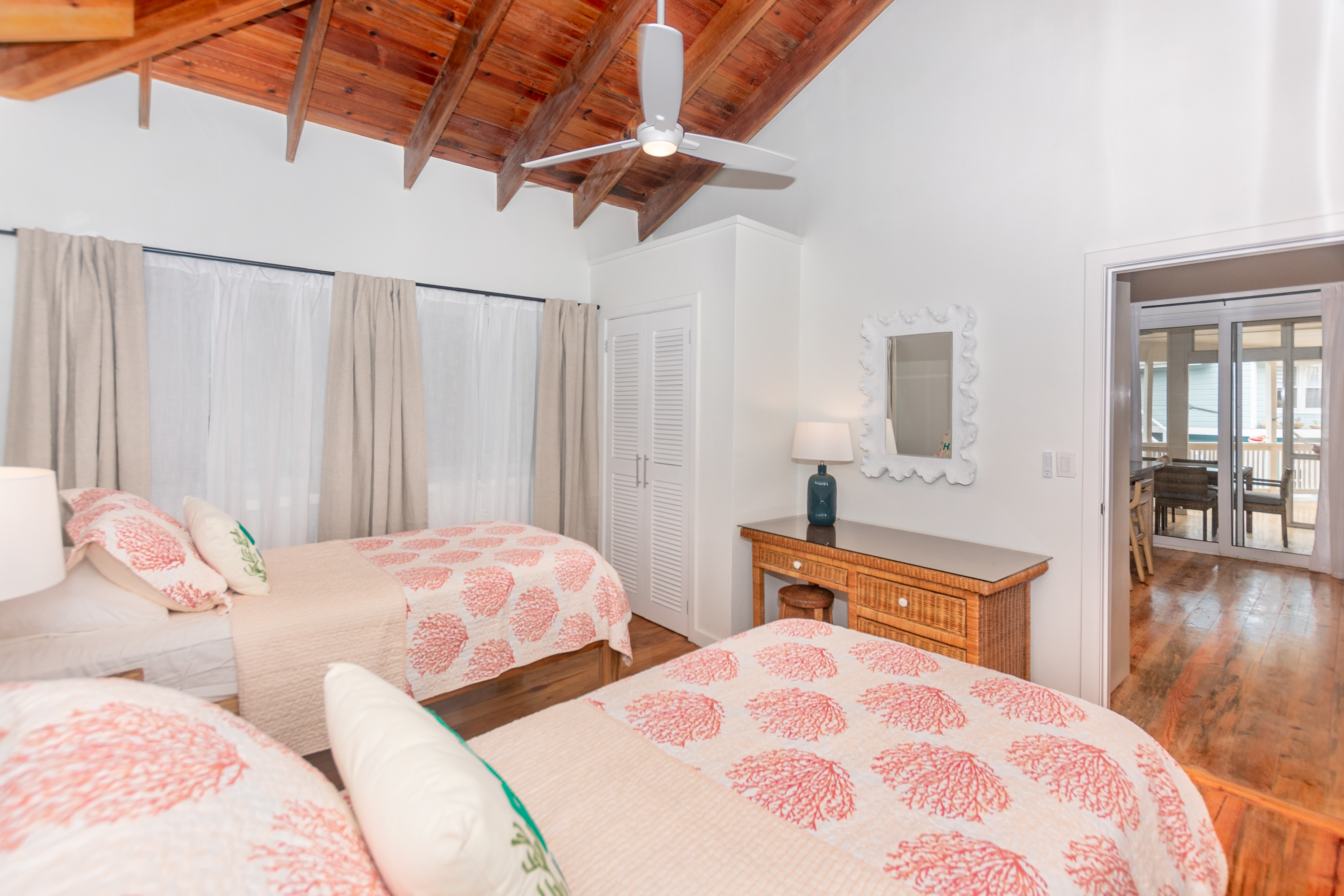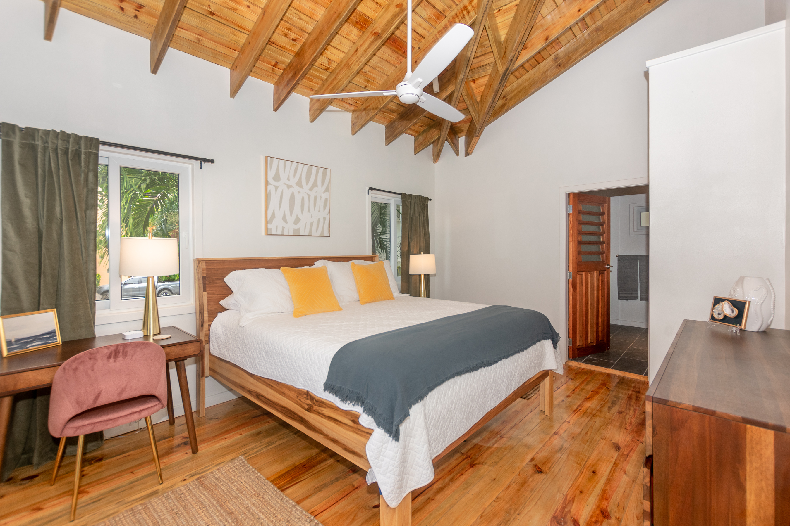 The Owner's Suite includes an open floor plan and a spacious deck with beach views and perfect breezes! With Caribbean style, vaulted ceilings throughout, it is hard to not relax into island vibes.